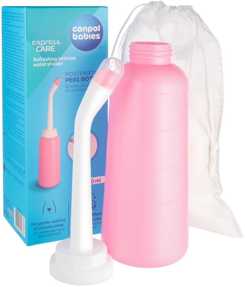 Riempire la doccia intima Canpol babies Intimate Shower con acqua calda e chiudere ermeticamente. Selezionare la punta adatta e capovolgere la bottiglia. Dirigere l’ugello verso il perineo e premere leggermente in modo che il getto d’acqua pulisca le parti intime. Utilizzare durante la toilette o in qualsiasi momento secondo necessità. Dopo l’uso, sciacquare la bottiglia, asciugarla e pulirla regolarmente con acqua bollente/saponata.