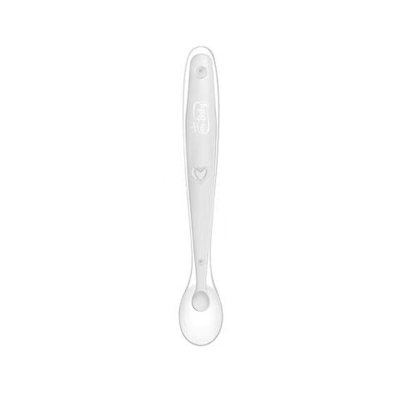 Cucchiaino in morbido silicone per neonati e bambini. Questo cucchiaino é realizzato con silicone alimentare di alta qualità, non contiene BPA (bisfenolo A) ed è perfettamente e totalmente conforme alle normative europee EN 14372-2004 ed EN 14372:2005.
